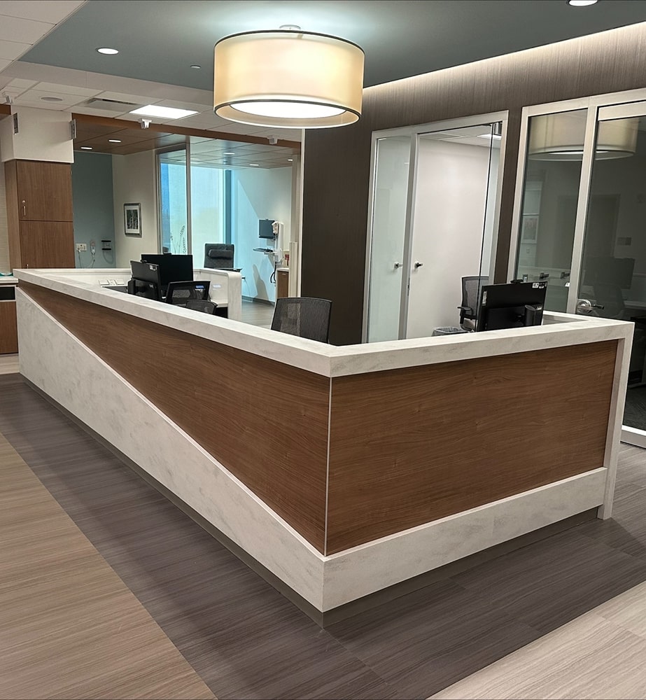 We know solid surfaces. We understand when you will see the seam. We know how tight a radius can be on a thermoformed corner and the AWI standards for all things solid surface.